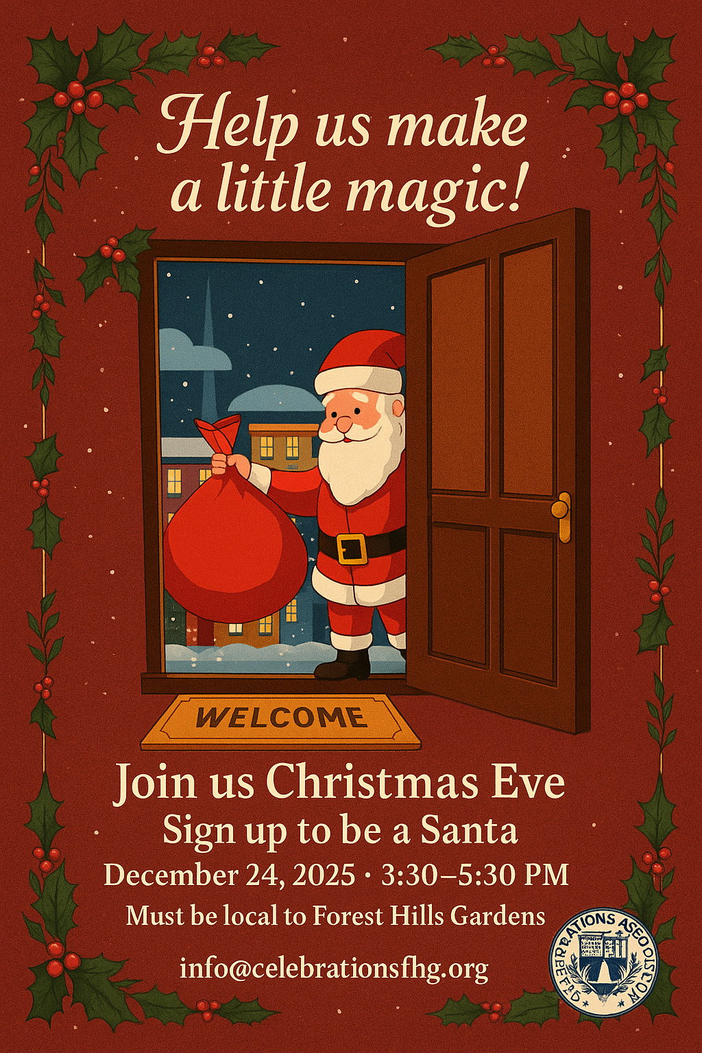 **In keeping with the committees local efforts, our Santas will visit, and deliver to children only within the Forest Hills Gardens at this time.